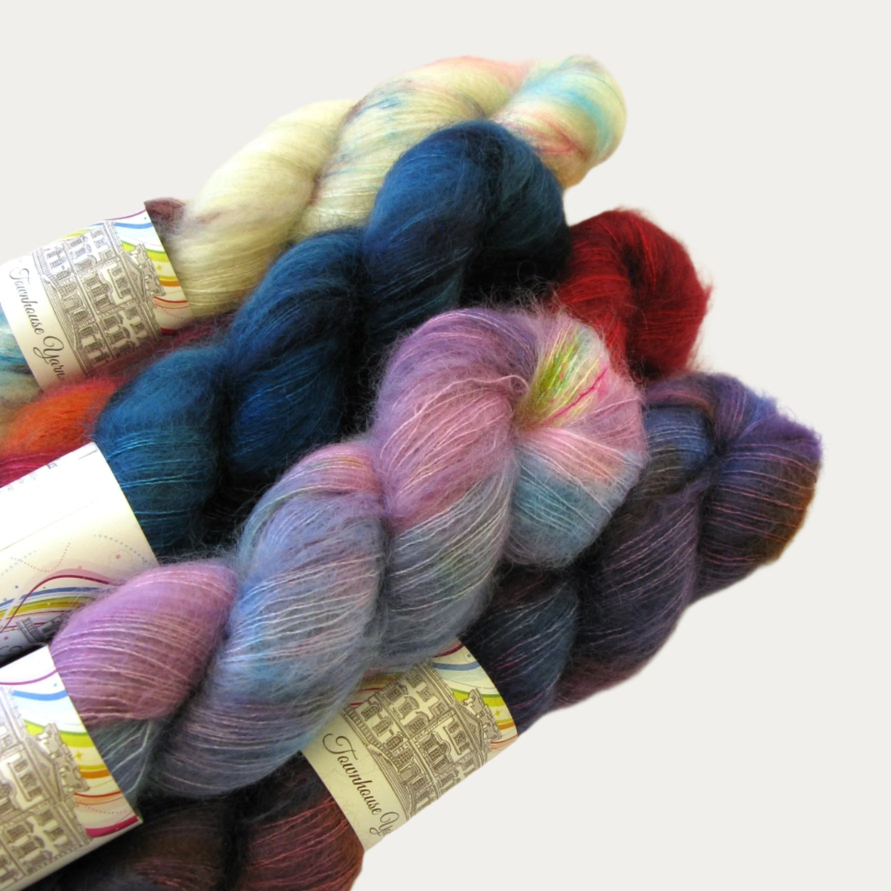 Abbey Lace di Townhouse Yarns è un filato tinto a mano con cura da Jenny a Dublino, che unisce la morbidezza avvolgente del mohair con la delicatezza della seta.