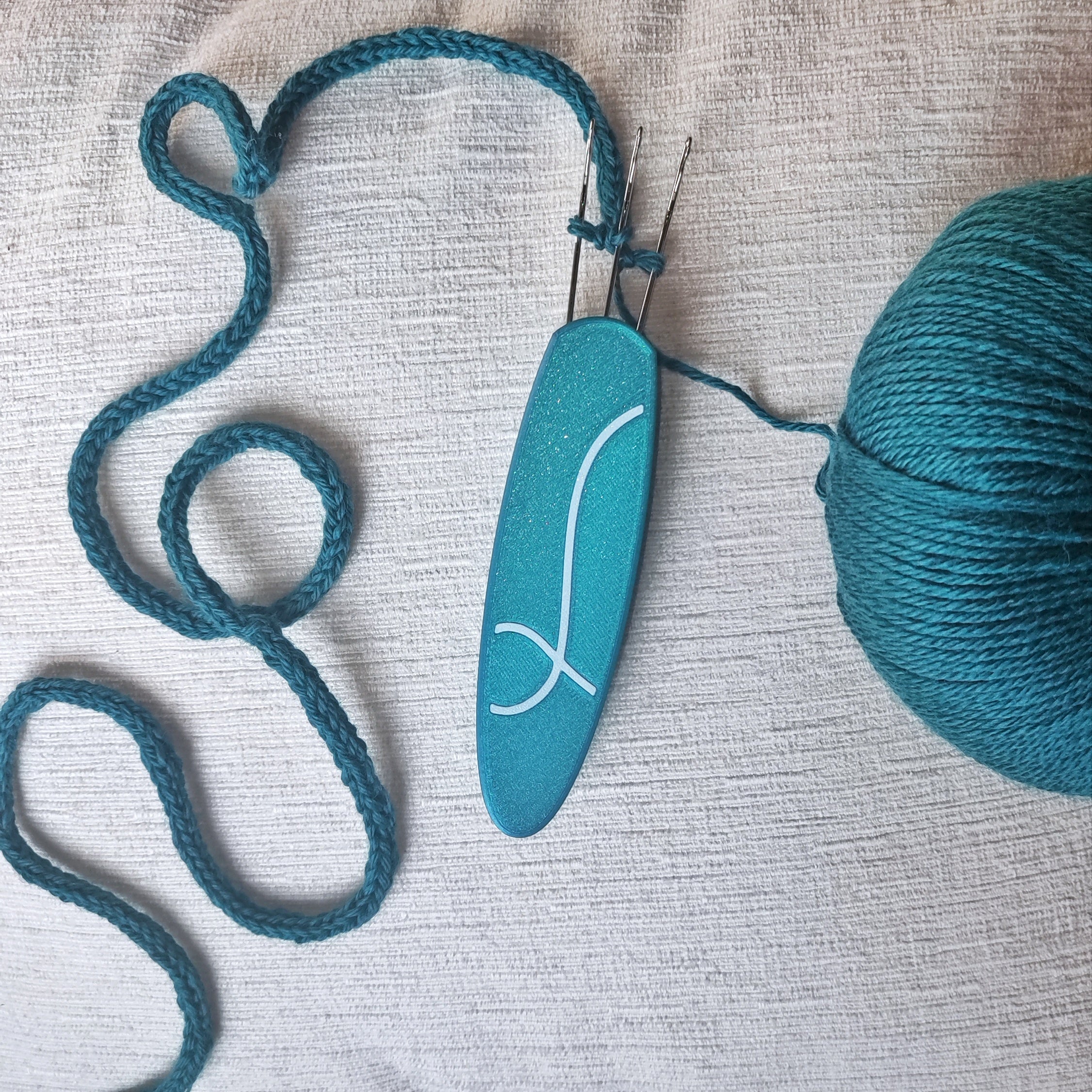 Creato da Autumn Goodman del Size Inclusive Collective, questo innovativo attrezzo è progettato per facilitare la creazione di i-cord, una tecnica versatile ideale per bordi, manici, finiture e altro ancora.