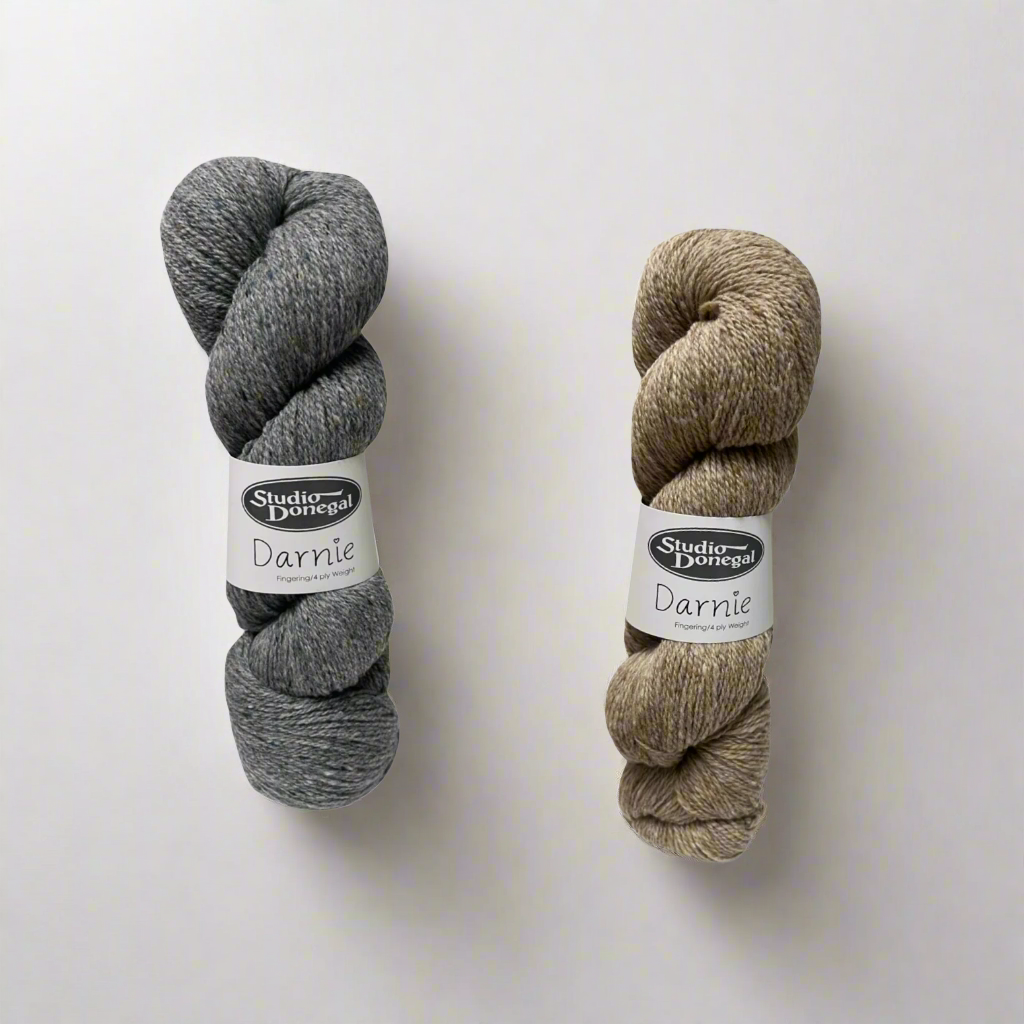 La gamma di colori di Darnie è ispirata alle tonalità naturali del paesaggio irlandese, con sfumature che spaziano dai toni terrosi e neutri a quelli più vivaci. La tintura avviene in modo tradizionale, utilizzando tecniche che garantiscono colori profondi e duraturi, per un filato robusto ma elegante.