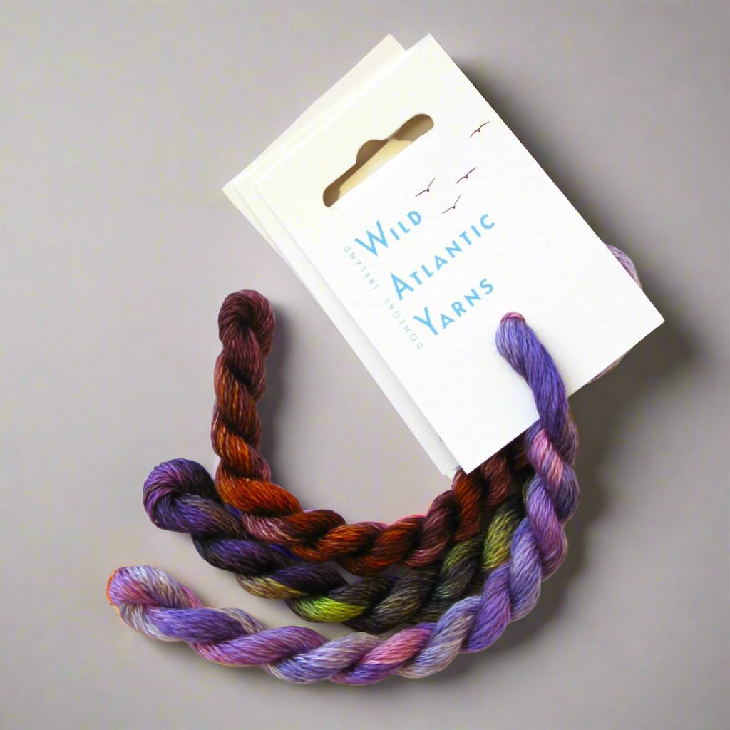 Il Filo da Ricamo in seta di Wild Atlantic Yarns è una scelta pregiata per chi cerca un tocco di lusso e unicità nei propri progetti di ricamo. Tinto a mano con una palette vibrante che si ispira alla natura e al folklore irlandese, questo filo offre una qualità superiore sia per la sua composizione che per la sua estetica.