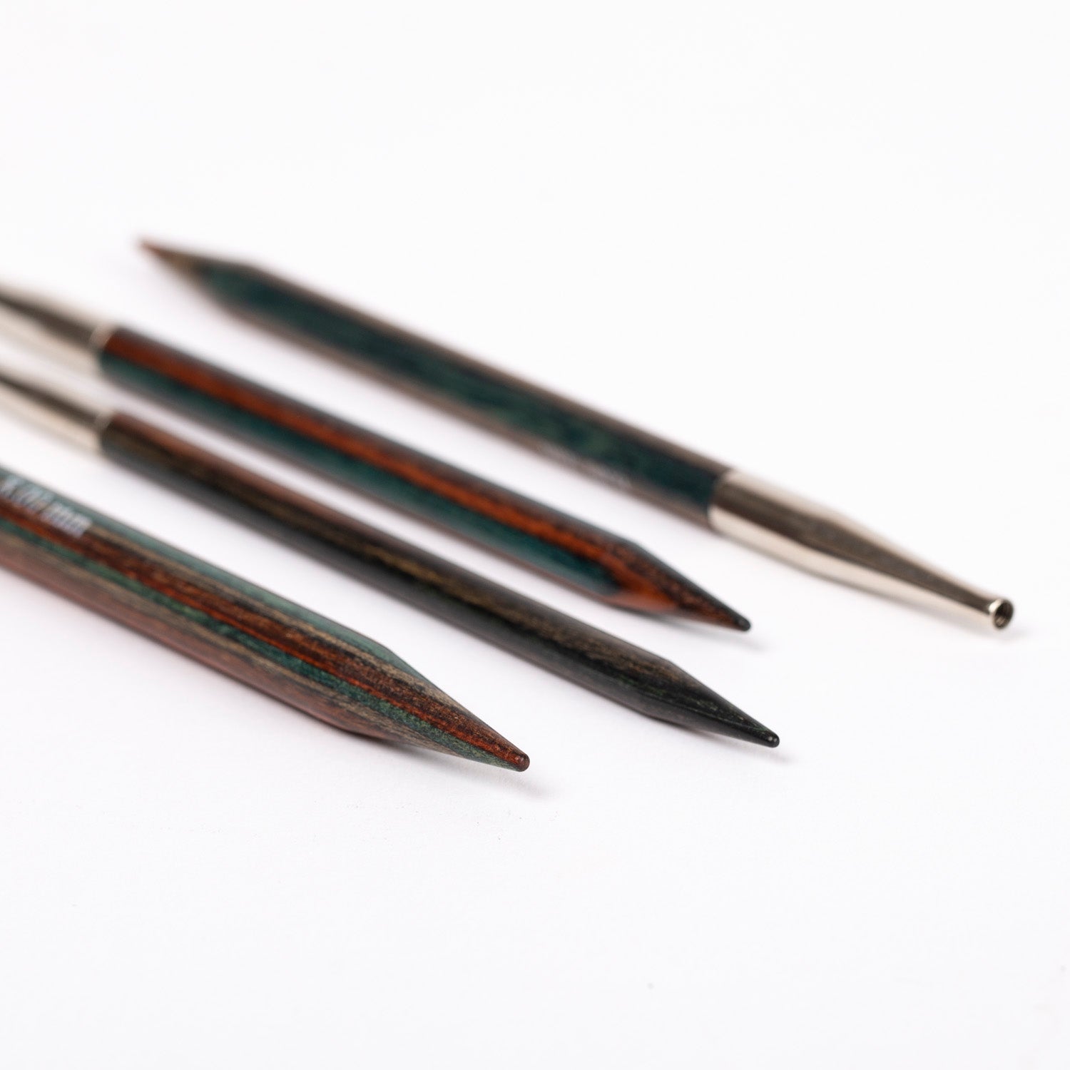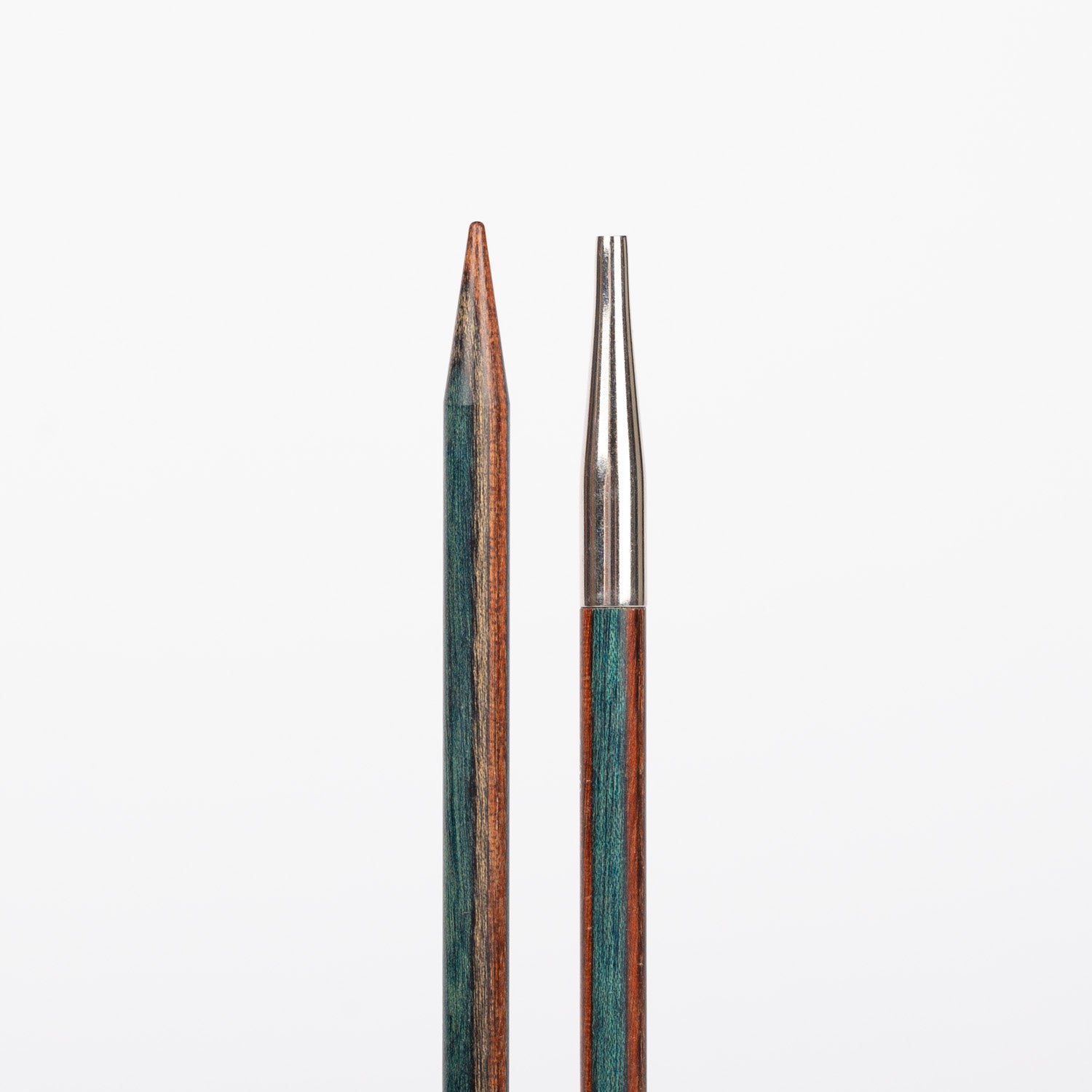 Versatile e pronto da portare con sé, tutto confezionato in un piccolo astuccio trasparente con la chiusura a zip. Contiene 8 paia di punte per i ferri circolari in il legno molto liscio, nelle seguenti misure: 3,5,-4,0-4,5-5,0-5,5-6,0-7,0 e 8mm - più 4 cavi da 60, 80 (x2) e 100cm con tappi, chiavi ed istruzioni.