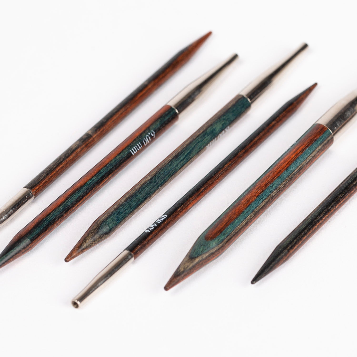 Questo set di ferri circolari componibili Deluxe della Drops è perfetto per i principianti per l'ottimo prezzo unito alla qualità dei ferri: in un bellissimo mix di legno di betulla colorato, contiene tutte le misure più utili e si alvora con una scorrevolezza media adatta ai primi lavori e a una moltitudine di fibre.
